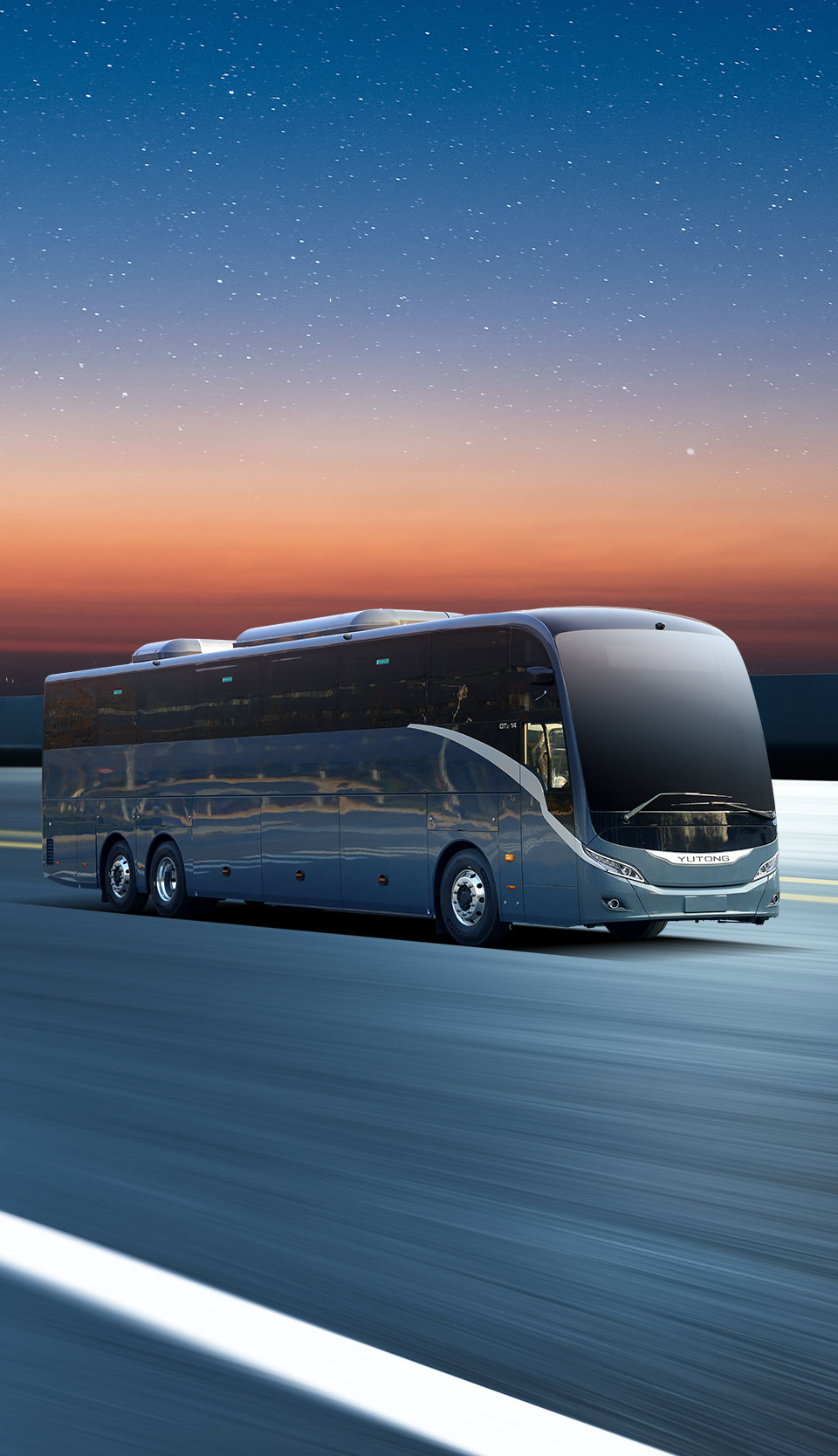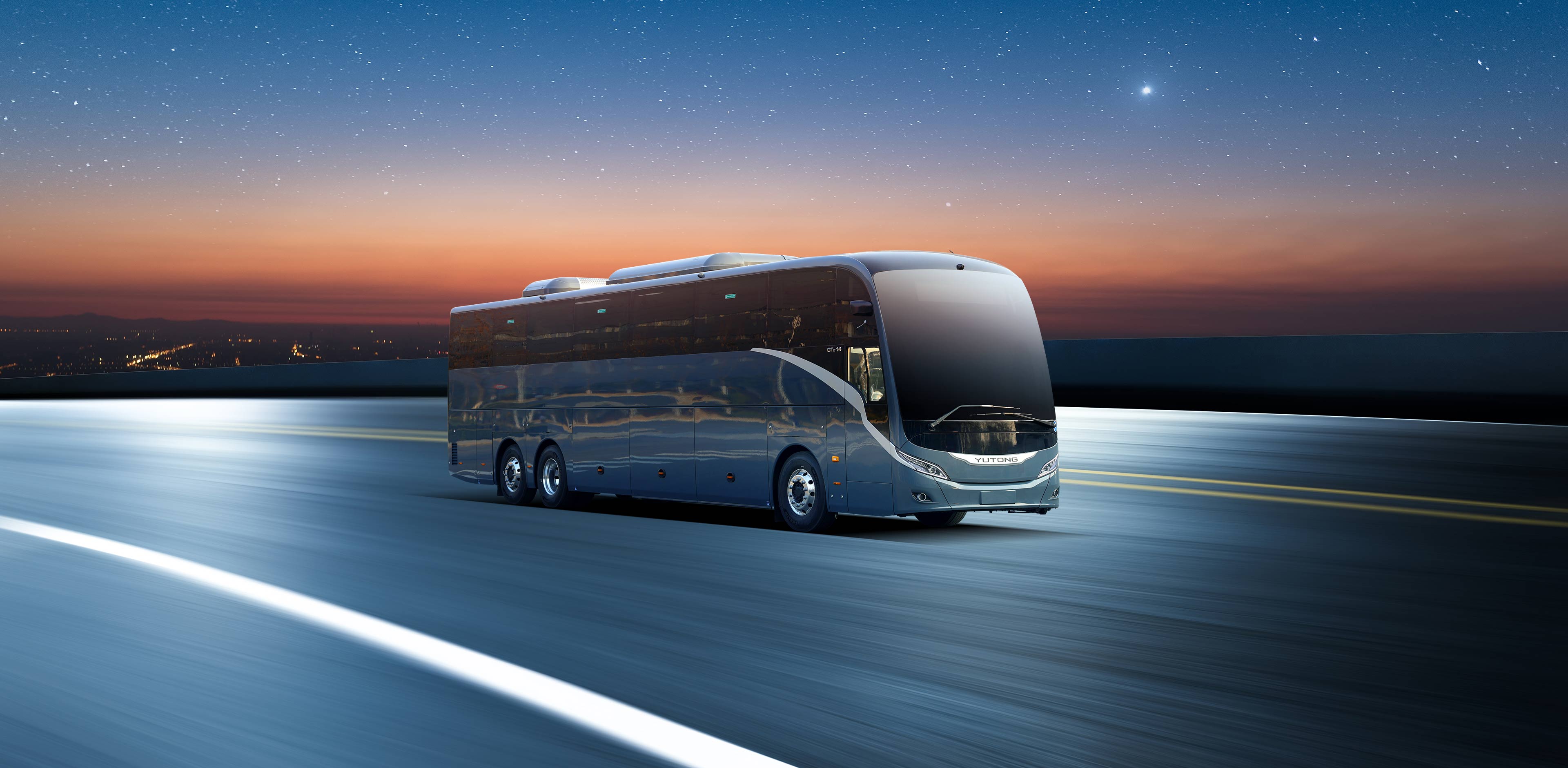 The Yutong T14E is a 14m high-end battery-electric tourism coach offering long driving range, large space, and ultimate safety for an elevated journey.